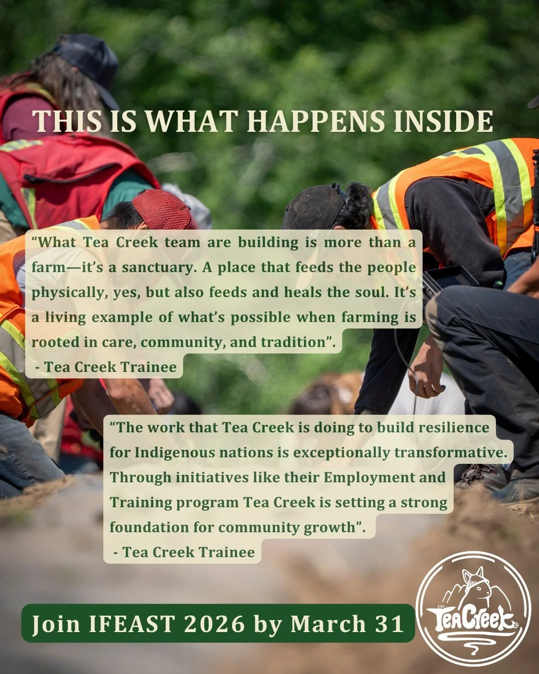 Tea Creek is an award-winning, Indigenous-led, culturally safe, land-based Indigenous food sovereignty and trades training initiative.